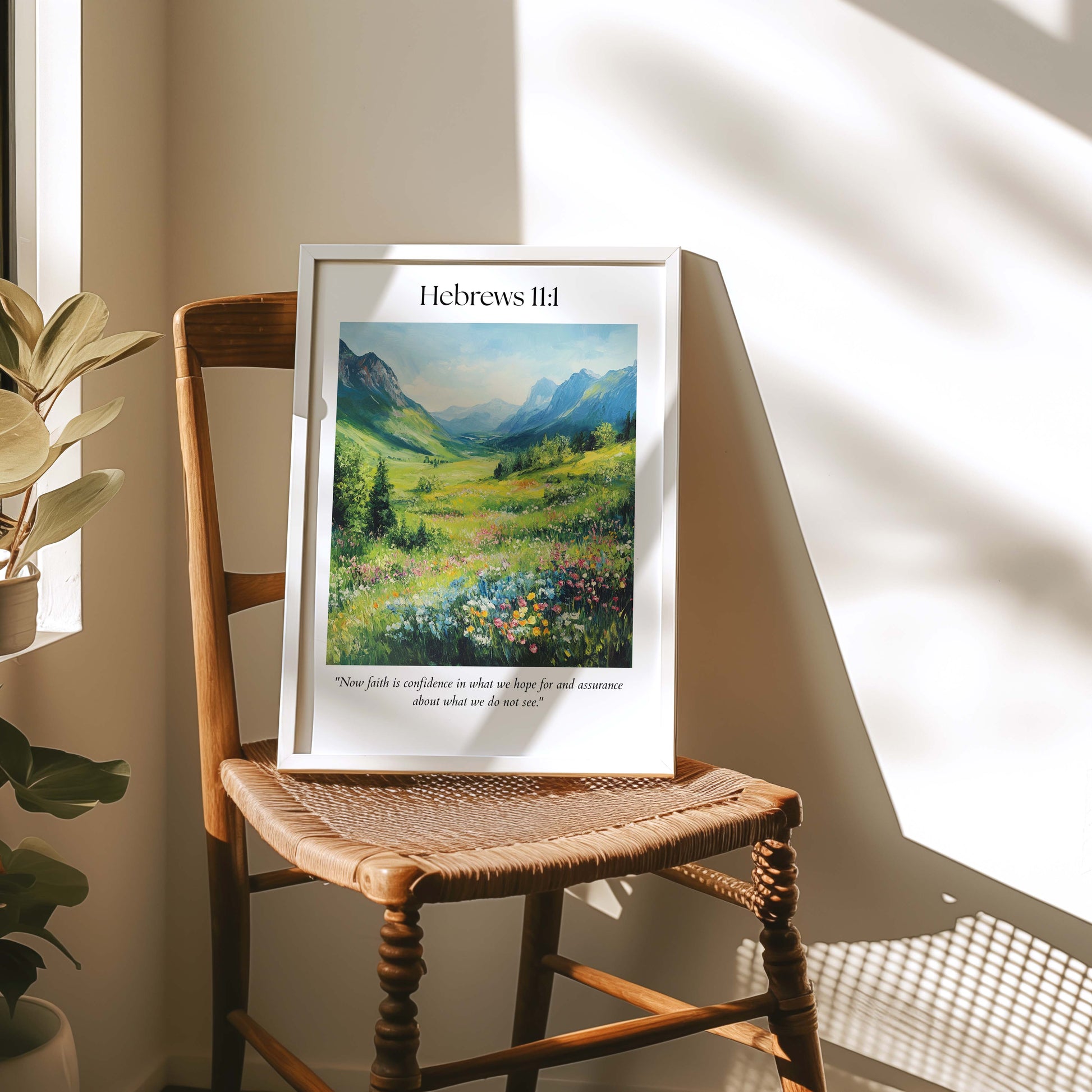 This Hebrews 11:1 Christian wall art features a bright, open valley that feels just as comforting as the message itself. The gentle colors and peaceful scene make it a lovely way to keep God’s promises close. Perfect for bedrooms, living rooms, or prayer spaces.