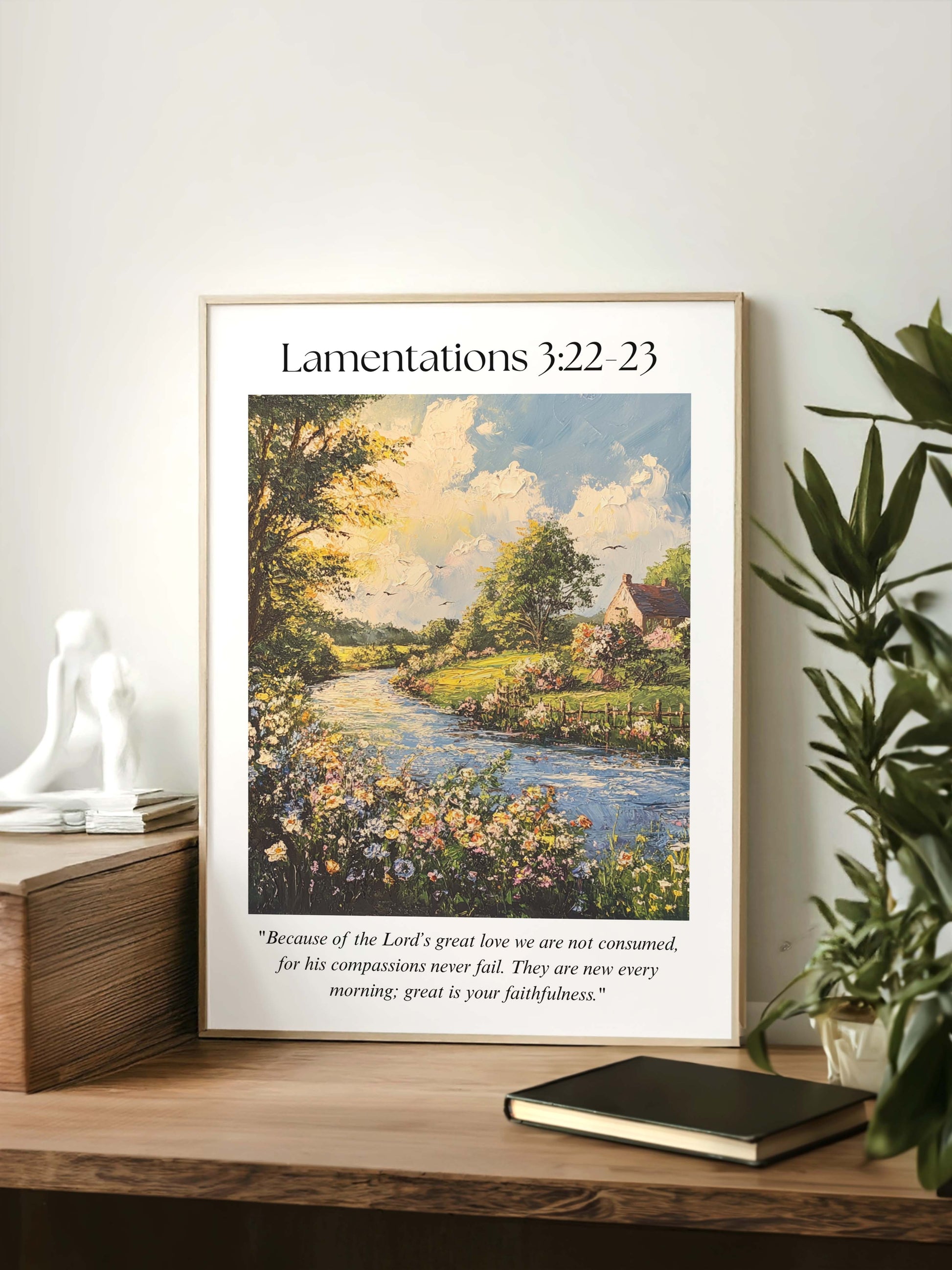 This Lamentations 3:22-23 scripture wall art is a soft reminder that God’s mercy is new every morning and His faithfulness doesn’t change. The warm colors and open landscape bring a calm, uplifting feel to any room. It’s a great piece of Christian home decor for living rooms, bedrooms, prayer spaces, or your office if you want daily encouragement on your walls.
